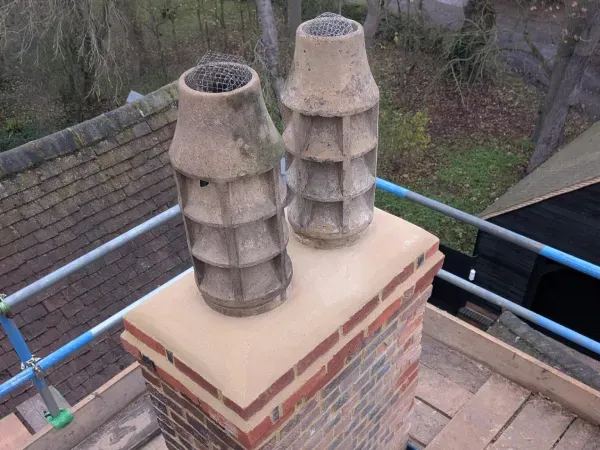 We fit secure clay pots and cowls to prevent rain ingress, birds nesting and downdraught problems.